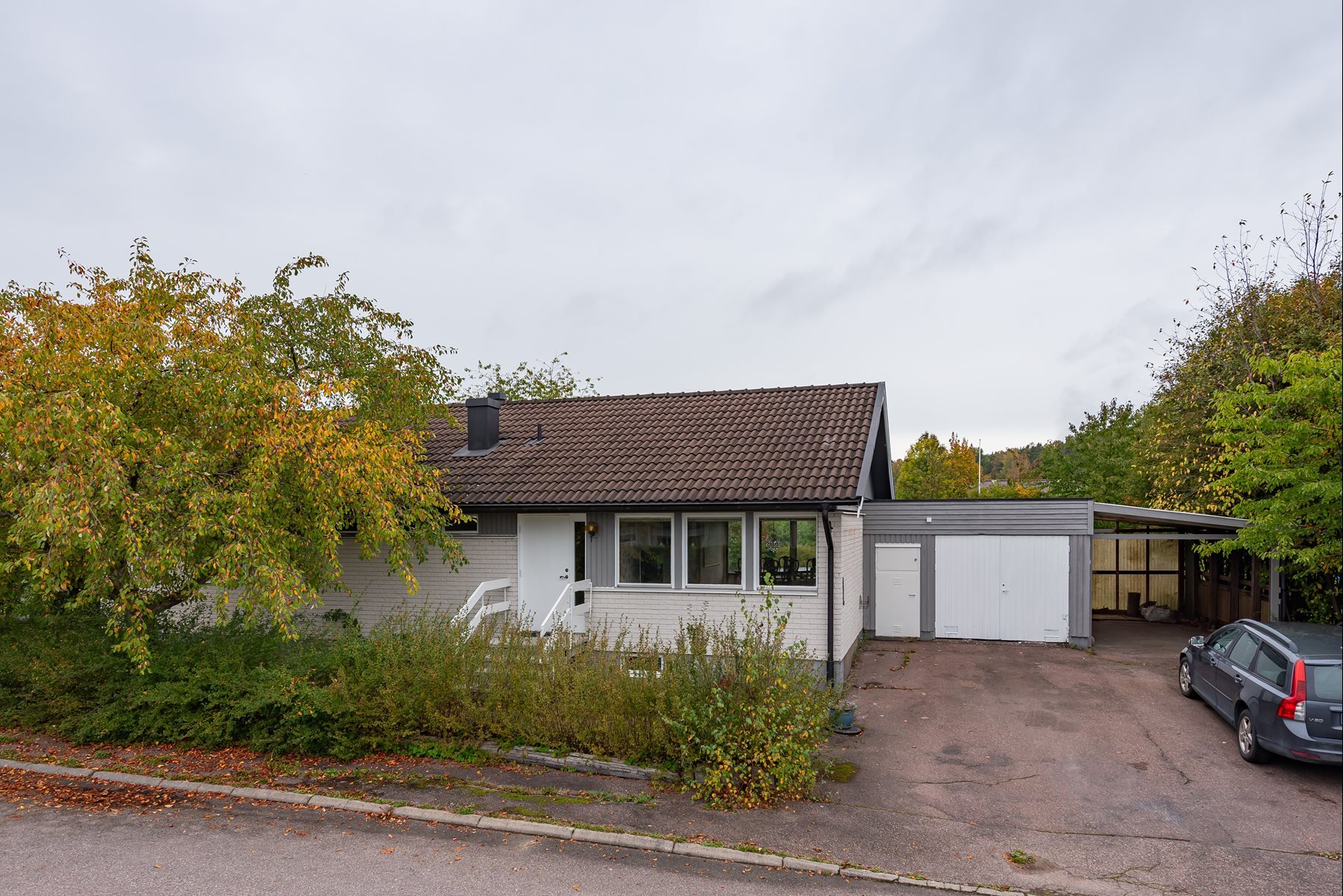 Stor uppfart med plats för två bilar samt garage och carport.