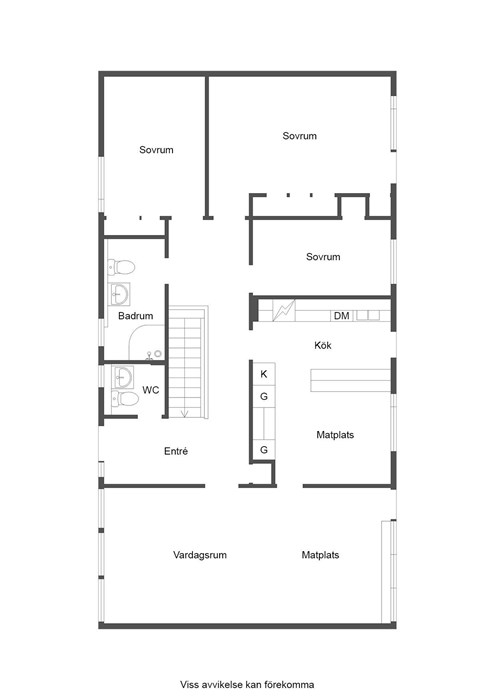 Väl inne i huset möts du av en ljus hall med plats för kappavhäng. Ett stort och luftig vardagsrum med fönsterpartier i två väderstreck och utgång till altanen. Ljust och renoverat kök med tillhörande matplats. Köket är utrustat med vitvaror i form av kyl, spis, ugn, diskmaskin och fläkt. Gott om förvaringsutrymmen och en fin vitrinskåpsdel. Tre sovrum på entréplan varav ett med utgång till gården.