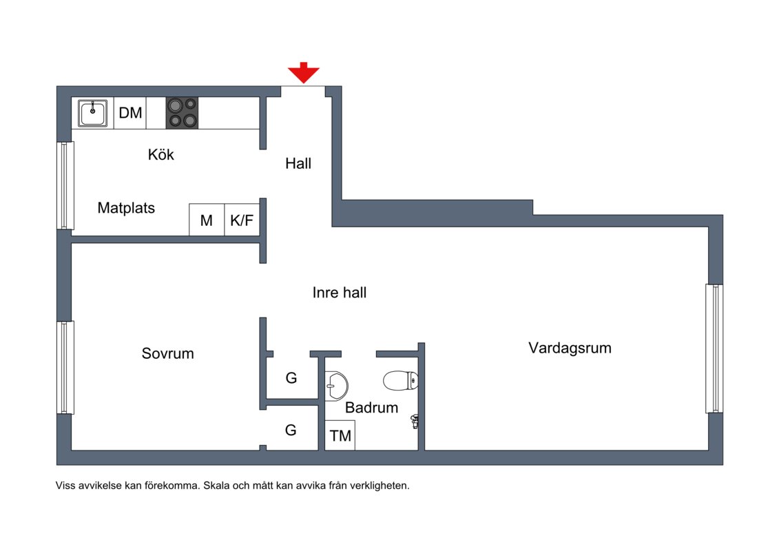 - 2 rum varav 1 sovrum. Boarea 52 m². Boareauppgift enligt bostadsrättsföreningen.